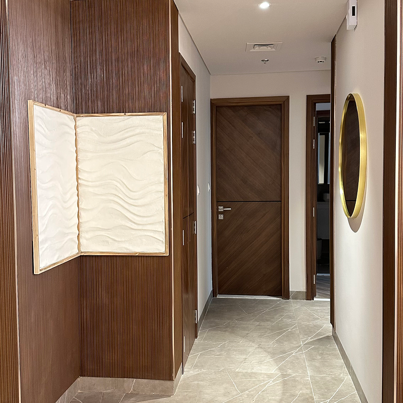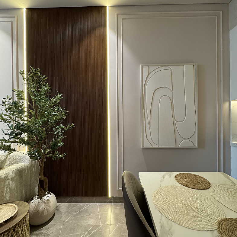 Khalq delivered a semi-luxury holiday home in JVC designed specifically for the short-stay rental market, a fun, vibrant project completed with efficient, fast-track execution. The space was styled to feel contemporary and welcoming, balancing comfort with luxe design elements suited for a diverse range of guests. Thoughtful finishes, smart layout planning, and practical furnishing choices ensured the home is both visually appealing and rental-ready, offering a memorable stay experience while maximizing operational ease for the owner.